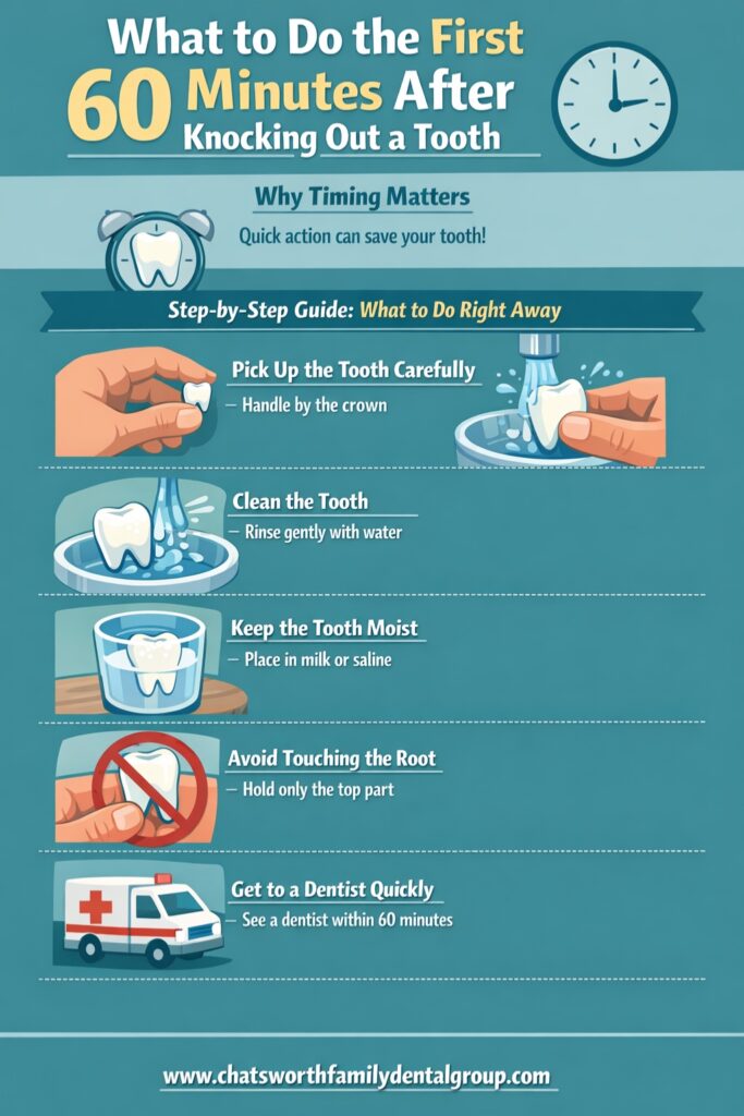 The “Golden Hour”: What to Do the First 60 Minutes After Knocking Out a Tooth Chatsworth, CA